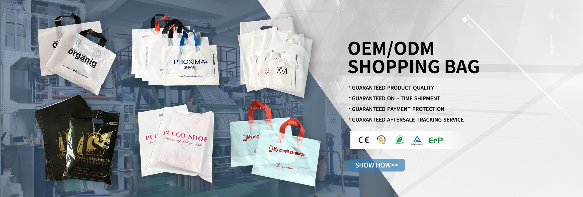 Özel plastik poli PE konfeksiyon alışveriş çantası yumuşak döngü kolu ile sıcak satış plastik alışveriş ucuz çanta